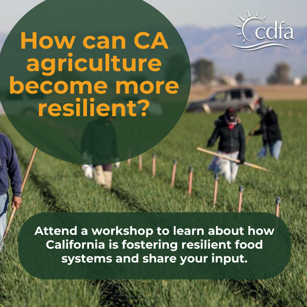 How can CA agriculture become more resilient? Attend a workshop to learn about how California is fostering resilient food systems and share your input.