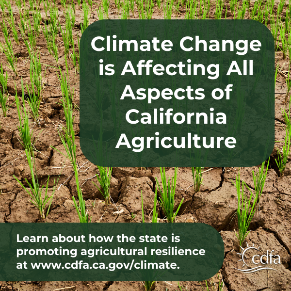 Climate Change is Affecting All Aspects of California Agriculture - Learn about how the state is promoting agricultural resilience at www.cdfa.ca.gov/climate