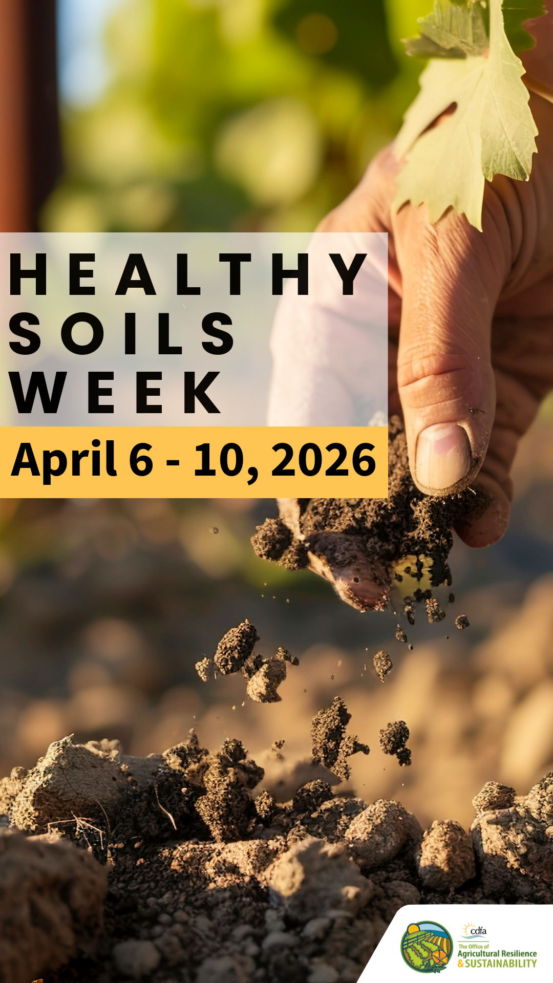 For more details and resources, follow @cdfa_oars on Instagram, @CDFA_OARS on X, and CDFA Office of Agricultural Resilience and Sustainability on Facebook. #CDFAHealthySoilsWeek
